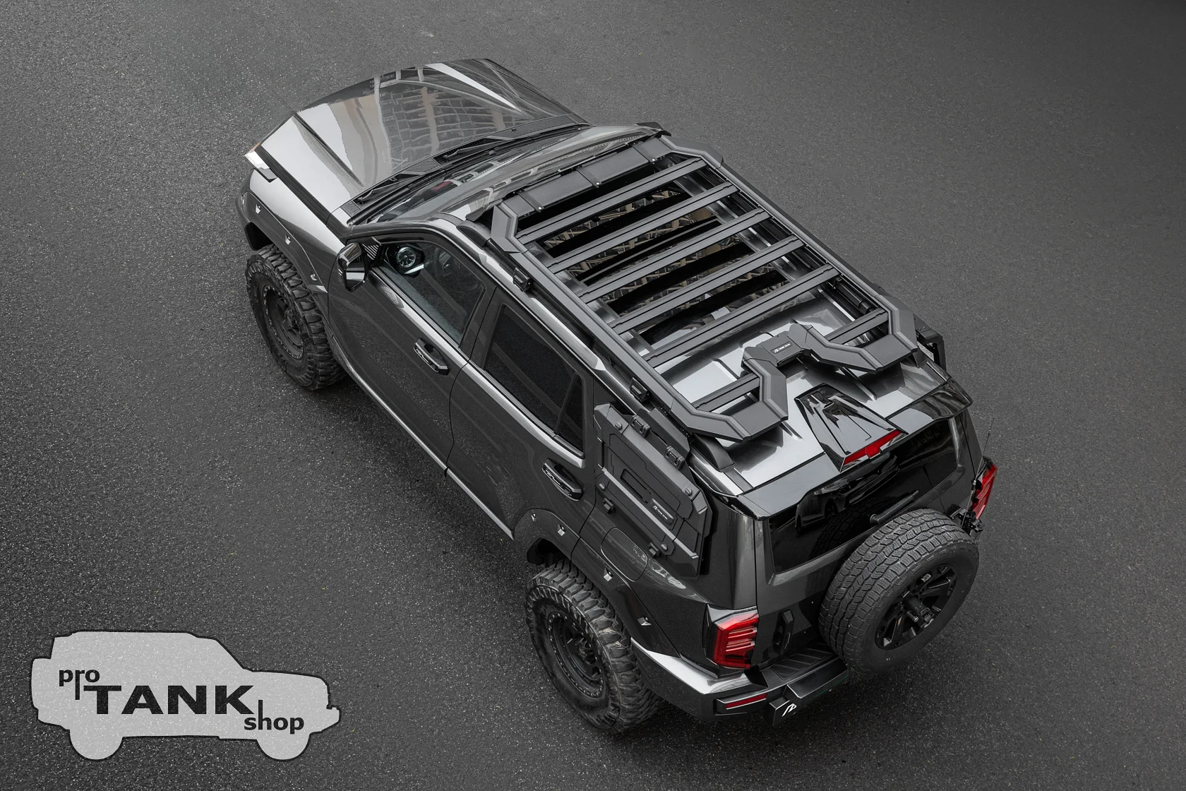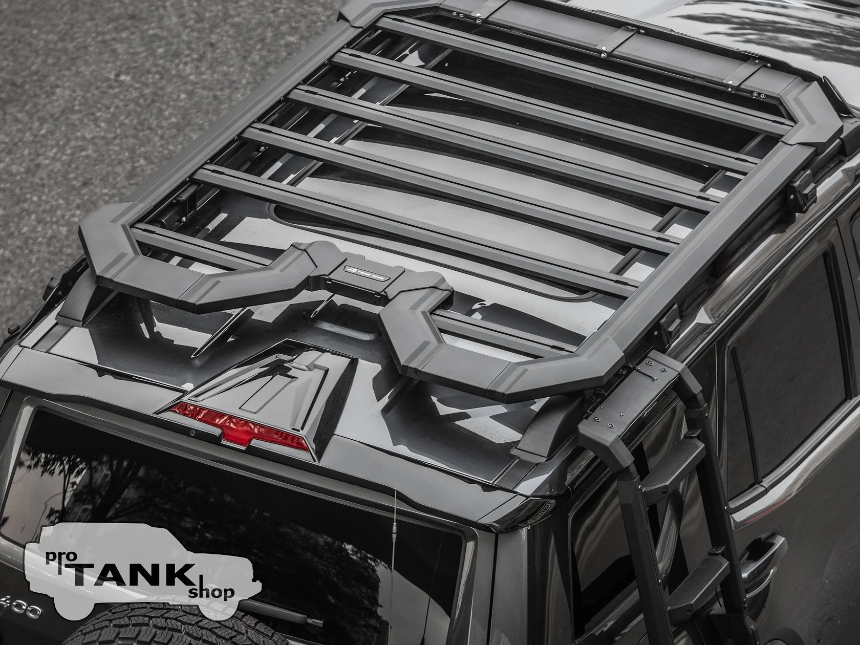 Дизайн багажника органично дополняет внешний вид TANK 400, сохраняя заводскую эстетику автомобиля. Аэродинамическая форма снижает уровень шума и сопротивление воздуха при движении на высоких скоростях.