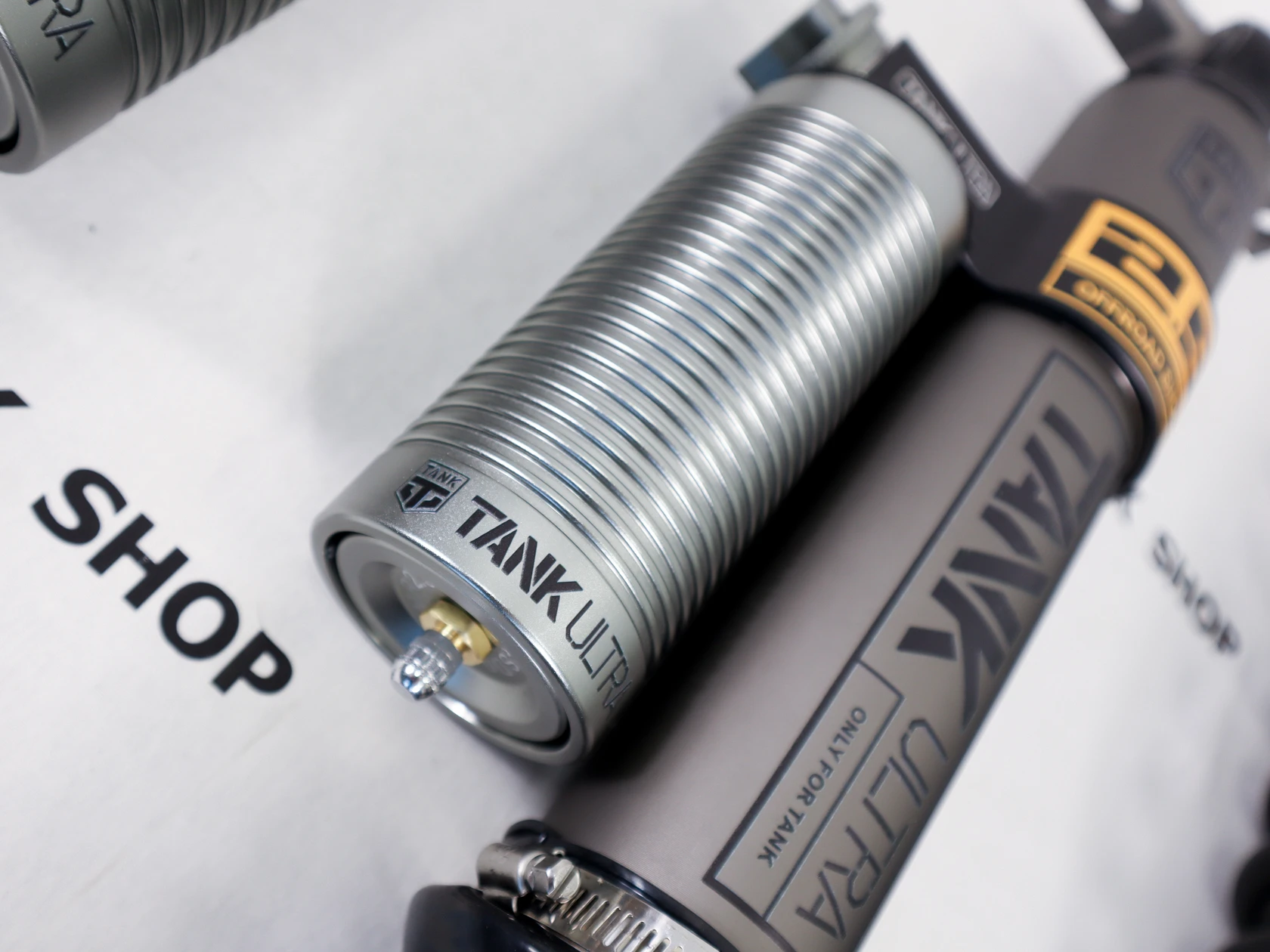 Газомасляные амортизаторы с выносными бачками и азотным наполнением — увеличенный объём масла и эффективный теплоотвод, что помогает сохранять стабильную работу демпфирования при длительных нагрузках. Давление азота: 120–180 psi.